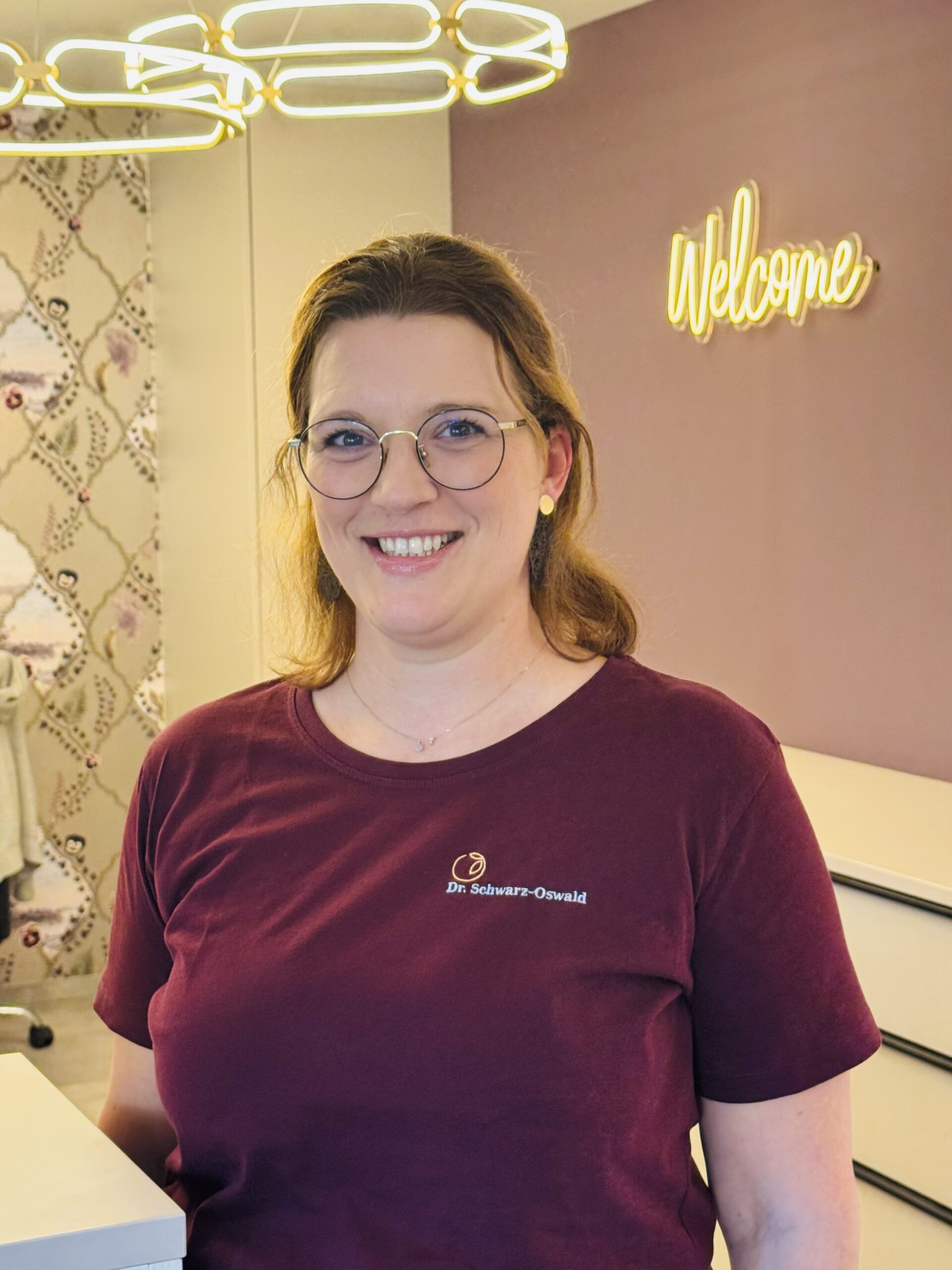 Office-Kraft Daniela empfängt die Patientinnen in der Praxis in Graz.